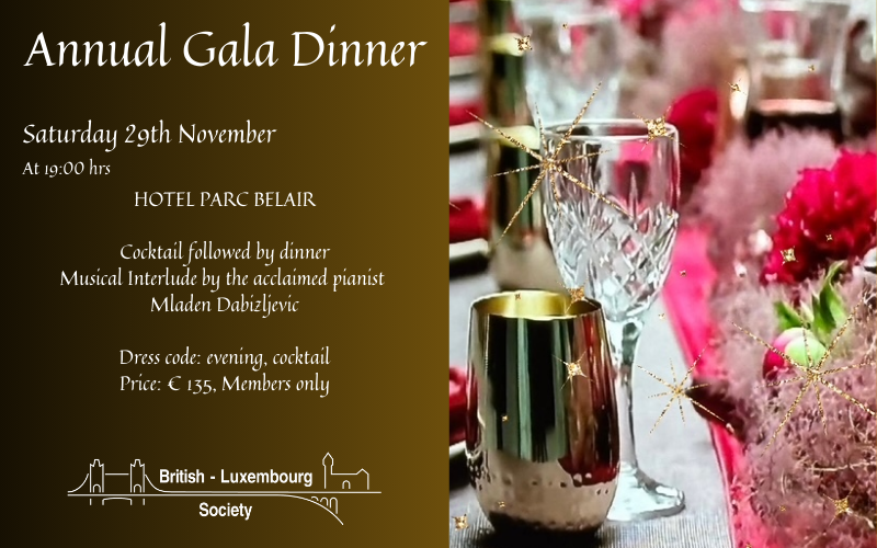 The British-Luxembourg Society warmly invites you to celebrate the Christmas season at a festive evening of fine dining and exceptional music.